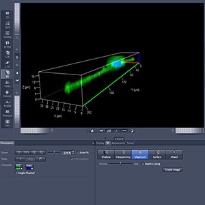 Modul zur Visualisierung von 3D Bildstapeln als Volumen-Modelle, Zeitreihen (4D)/Movies, verschiedene Renderingmethoden, Maximumintensitäts-Projektion. Werkzeuge zur interaktiven 3D-Messung.Gerne beantworte ich Ihre Fragen auch persönlich